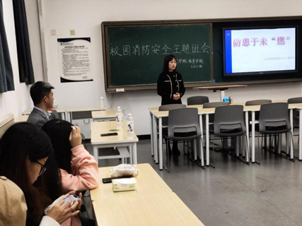 在主题班会开展过程中,各班不仅结合近年来高校校园消防安全事故典型案例开展警示案例教育,并开展学生公寓消防安全教育,督促各班同学做到“四知一诺”,而且宣传了秋冬季传染性疾病、“悲秋综合征”的预防和治疗措施;不仅学习了消防器材的正确使用和火灾逃生技巧,而且提醒各位同学在校园内禁止违规使用电器和易燃易爆物品,以及坚决杜绝私拉电线给电瓶车充电等存在安全隐患的行为,将同学们在秋冬季所能遇到的校园安全隐患扼杀在摇篮中。