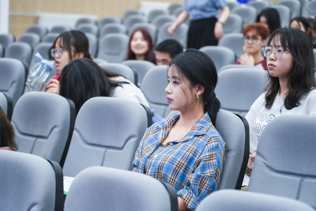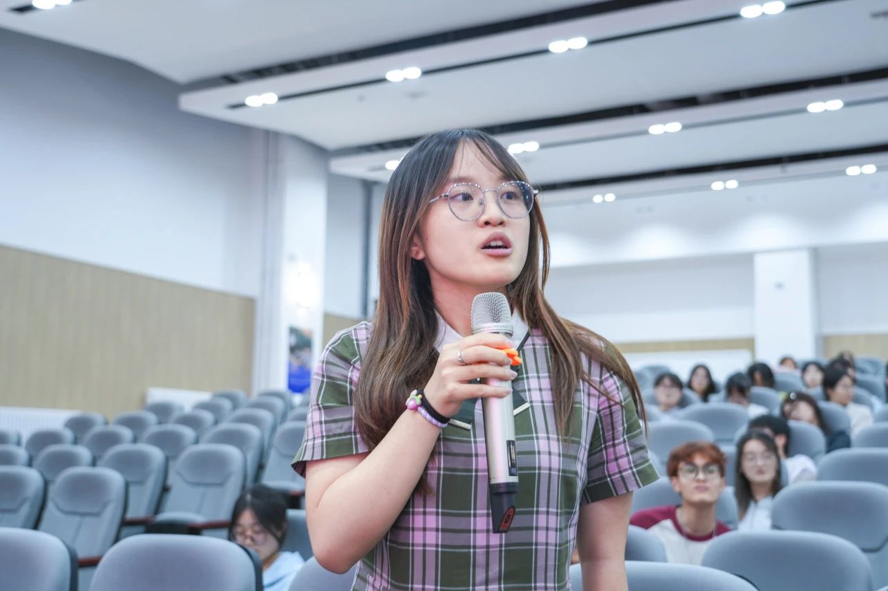 在最后的互动交流环节,见习生们踊跃发问,就如何让孩子们既有童年的快乐、又能考入优质学校成就梦想,杨校长结合交大教育管理集团建设优质高效课堂、全科考核、五育并举做了耐心解答。同时就本次见习活动的“一次‘见’、串起‘习’的链条成人达己”为同学们提出了宝贵的持续学习建议。现场互动频繁,气氛热烈,掌声彼伏此起,大学生们眼中的光芒如夜空中的繁星,格外闪亮!此刻,梦想在大厅中回荡,恰如丝丝缕缕三两风、渐入十万八千成才梦!